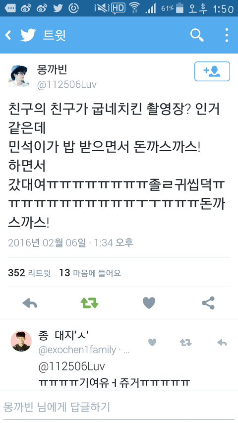 귀여워~~~ 민석이 돈까스까스 많이 먹고 힘내서 촬영해!!!!