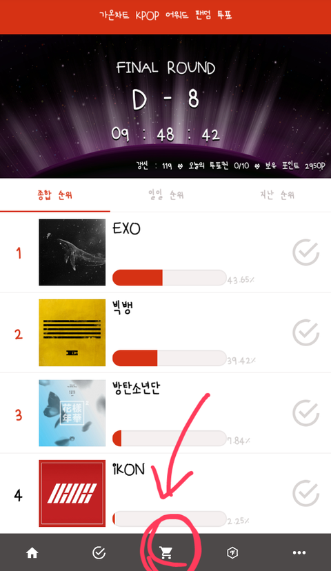 엑소 가온 투표 포인트 얻는 방법(쉬움)