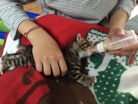 3주된 눈도 제대로 못 뜨는 새끼고양이가 버려져 있었어요