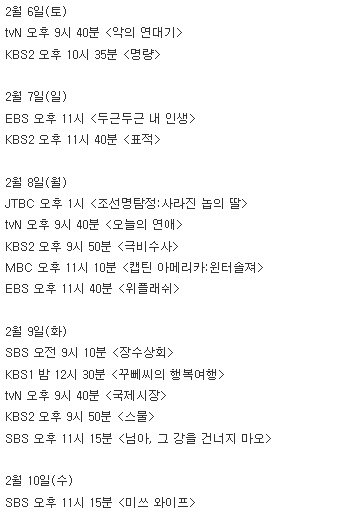 2016 설 특선 영화