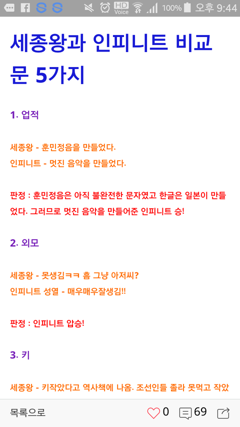 일단, 한글이 일본이 만들었다고 하네요. 한글은 세종대왕시기에 만들었는데 말입니다. 또한, 인피니트는 연예인이니 잘 생겼겠지만 세종대왕은 왕인데 잘생겼을 수도 있고 못생겼을 수도 있는데 말이죠.