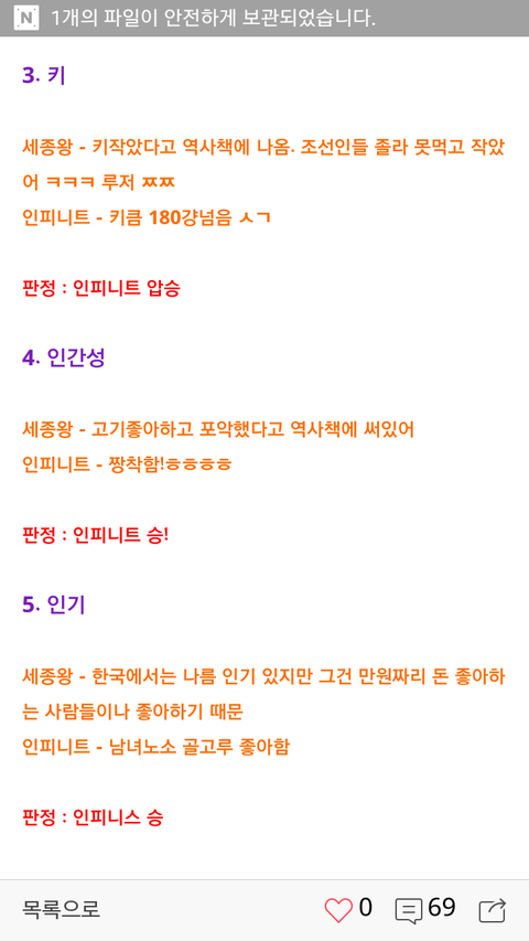 또한 인피니트 멤버들이 키가 크고,세종대왕은 작다고 하는데, 1500년대 평균키와 2000년대의 평균키가 달라 비교할 수 없으며 사진 속 글을 쓴건 2015년 8월경입니다. 따라서 5만원권이 발행되었다는 것인데, 그러면 사람들이 세종대왕을 좋아했던 사람들이 줄어들고 신사임당을 좋아하는 사람들이 늘었나요?(위인적으로) 또한 저희 할아버지 할머니께선 인피니트를 모르는데 말이죠.