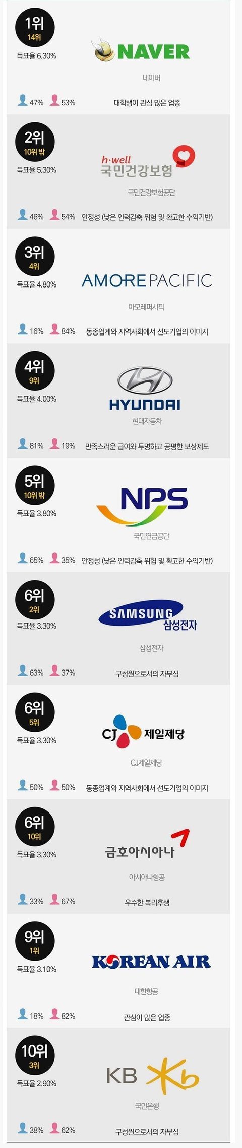 대학생이 꼽은 가장 일하고 싶은 기업