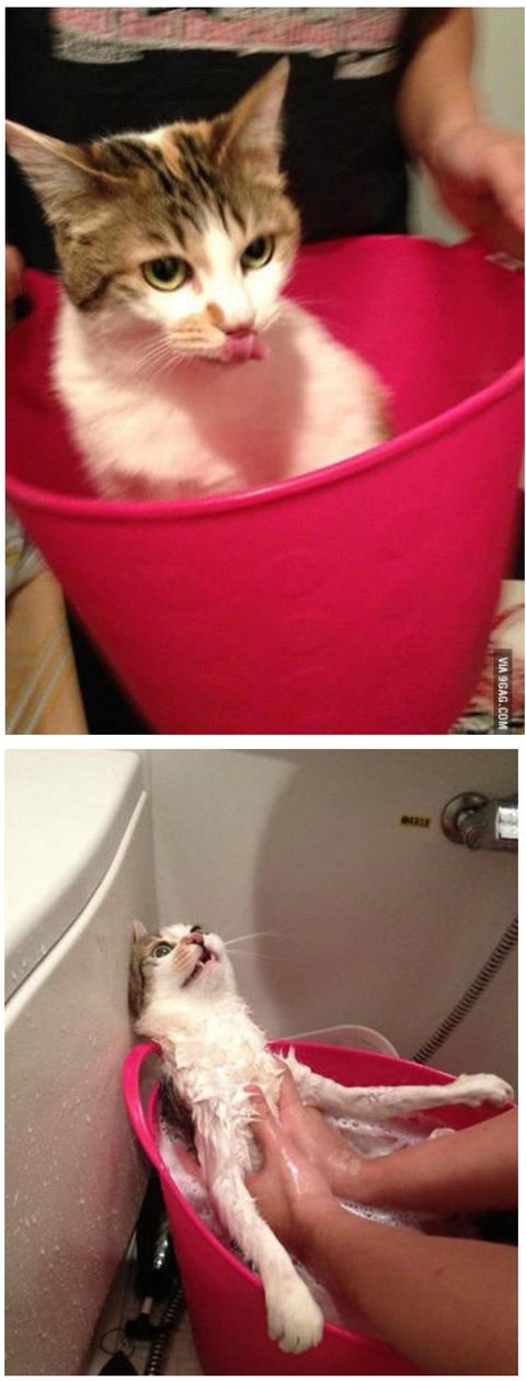 목욕바구니인걸 너무 늦게 안 고양이