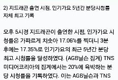 인기가요에 지디출연하자마자 17퍼센트넘게 시청률 오름 지금까지 넘사벽성적이고 깨진적도 근처에가본적도없는 성적