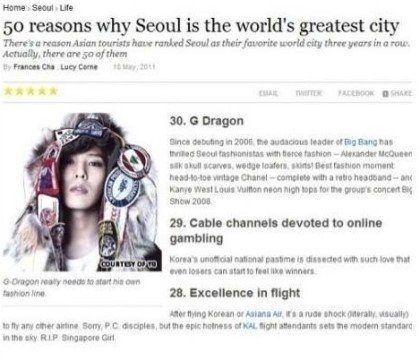 CNN이선정한 대한민국이 대단한이유 탑50에 지디(1위가 숭례문)