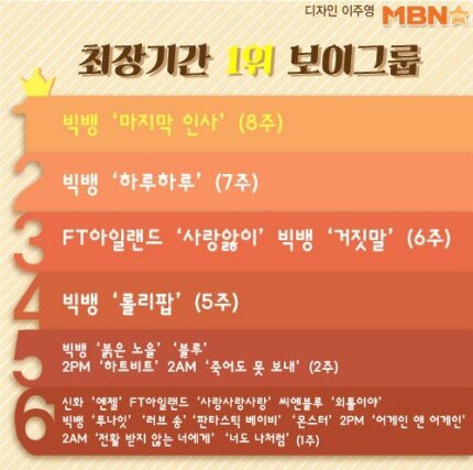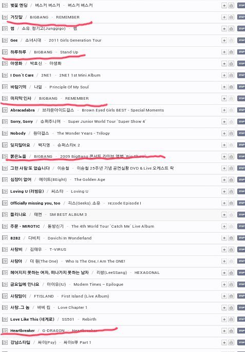 역대 음원차트순위 빨간줄이 빅뱅노래 다 지디가만든노래