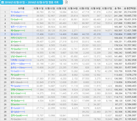 아프리카 BJ 일주일수입
