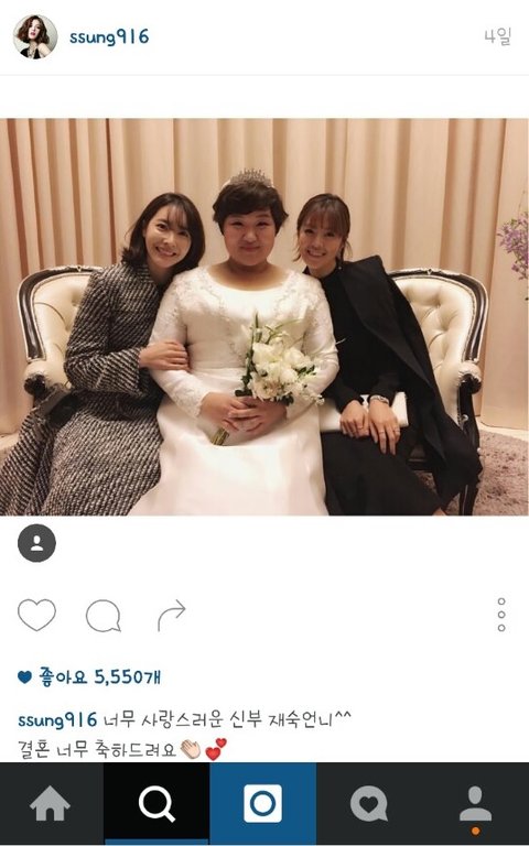 인스타그램 왕지혜랑 신부 하재숙이랑 셋이찍은사진도
