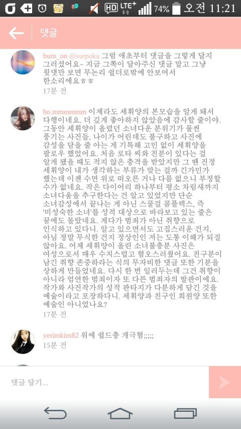 이건 신세휘 친구분이 사람들한테 단댓글인데 욕을써서 좀 더 욕먹는거같애;