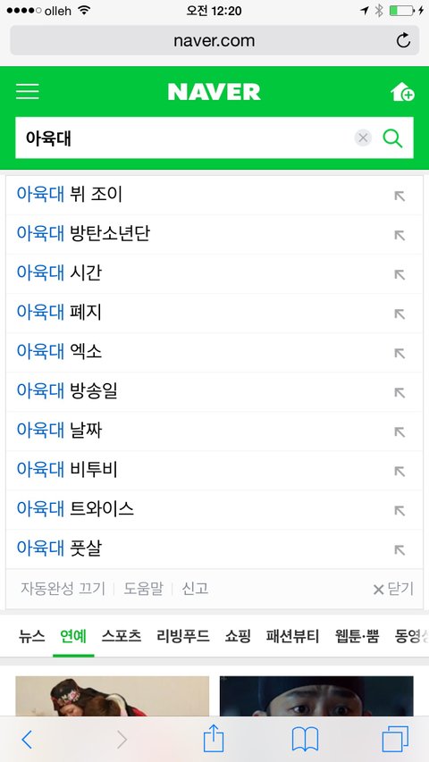아육대 네이버에 치면....