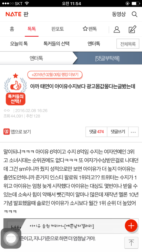 아이유팬코해서 태연,아이유,수지 욕먹이게하고 세팬덤 이간질시키고 결국 지능적으로 아이유팬 병신만드는 안티임ㅋㅋㅋ조카예전부터 한놈이 아이유팬코하면서 계속 타가수까는글올렸는데 그때 저러다말겠지 하고 캡처안했는데 쟤랑 동일인물임ㅋㅋㅋ