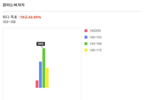 여자키 163~168이 남자키로 175~180인데.. 남녀 서로 원하는 키가 비슷한듯..