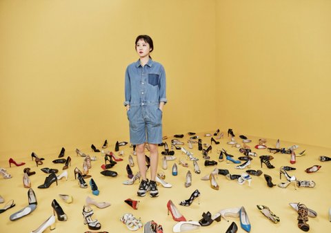 무슨 컨셉인지 모르겠지만 널부러져 있는건 힐이고 본인이 신고 있는건 운동화인걸 보니