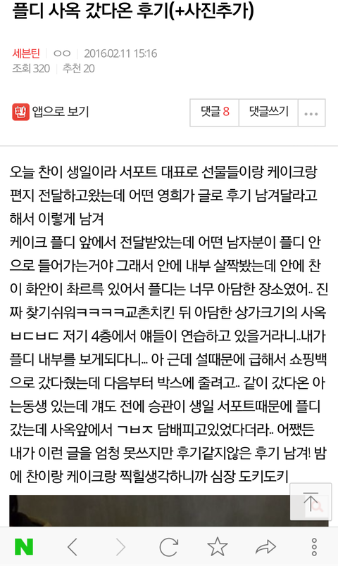 얘들아 나 여기 누워도되니...? 아 진짜 심장떨려 손까지떨려 우리 서포트 케이크가 센터예여ㅛ 여러분!!! ㅅ센터!!!찬이 바로 앞.. 차나 사라해!!!!!겨론해!!!!