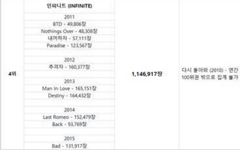 다돌은 집계불가로 뺴고 남은앨범들(유닛솔로제외)만 합산하면 1,146,917장으로 우리 4위야 전체가수중에헐