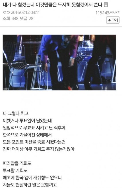 지네가 XX가 지네 화력인줄 착각하고 투표 안해놓고선 피해자인척 어이없다ㅋㅋㅋ
