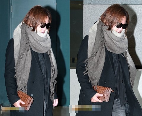 올블랙에 미역 같은 스카프까지 칭칭 둘러 감고