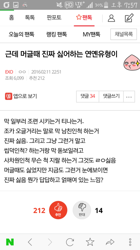 위쪽팬톡분들인데기분이..