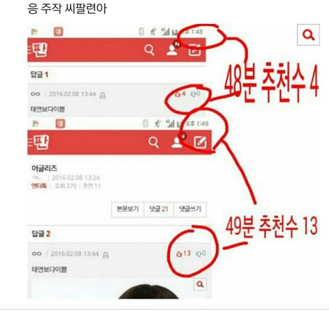 아 진짜 조카 억울함 우리는ㅋㅋㅋ.. 왜 맨날 조작 팬코라고 하냐고 그러는데 진짜 조작 팬코인걸 어쩌라는건지 모르겠음 특히 레드벨벳 다리 글에선 증거 정확히 잡아서 올려놨는데 니네 언니 얼굴 관리나 시키라고 그러고ㅋㅋㅋㅋㅋㅋ 우리가 수가 딸려서 팬톡에 아무리 링크 퍼날라서 베플 바꾸자고 신고 하자고 해도 아무런 효력도 없어서 더 답답함 예전부터 계속 우리 글에 조작하는 애 있는데 사라져줬으면