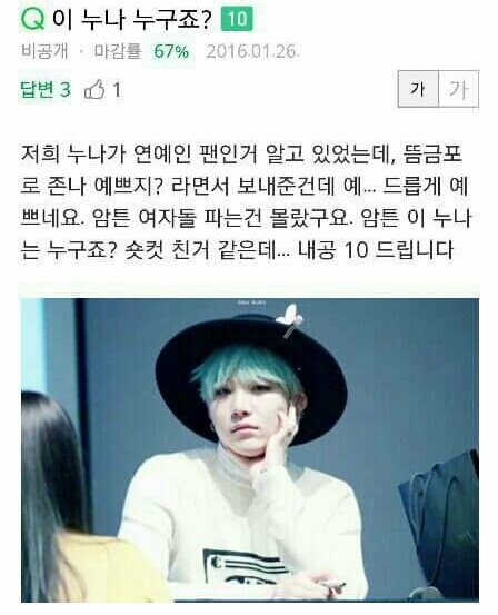 이삐들 윤기 여자로 오해 받았닼ㅋㅋㅋㅋㅋㅋㅋ