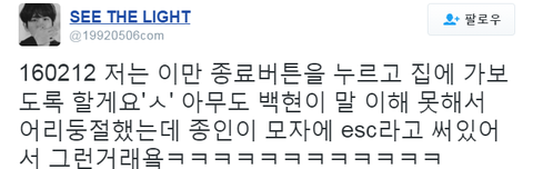 백현:저는 이만 종료버튼을 누르고 집에 가보도록 할게요'ㅅ'