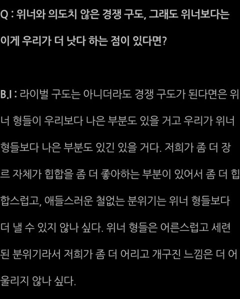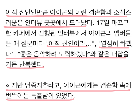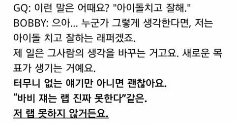 그리고 기사 특성상 이것저것 짜깁기해서 본래의도와 다르게 와전되는 경우가 많거든.거기다 예민한 질문까지하는데 저렇게 깔끔하고 유하게 대응한다는건 그만큼 말을 신중하고 예쁘게한다는거ㅠㅠㅠ보통 저런 질문에 말 잘못해서 논란되는 경우도 많이 봤는데 우리애들은 진짜ㅋㅋㅋㅋ크b