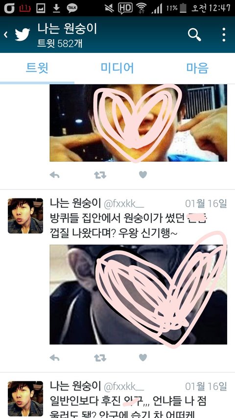 저런글이 수백개야...단순히 기분나쁘고 보기싫은정도가 아니고 진짜 정도를 넘은애야+) 얘한테 뭐라한아미들 몇몇있는데 저런말로 답장해 내가답장받은것도아닌디 기분더럽더라