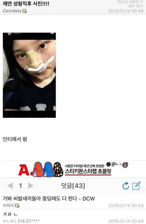 중딩때도 성형하네