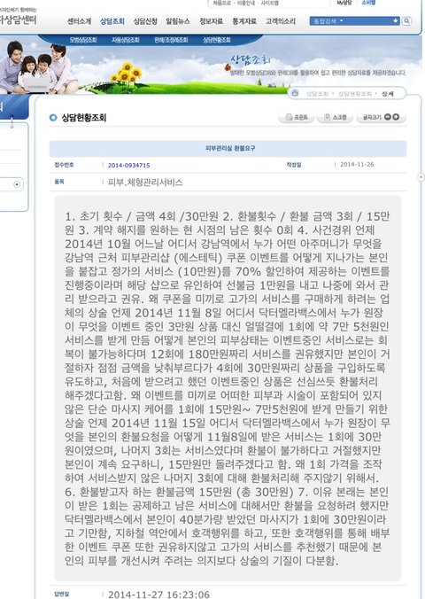 소비자보호원에 여기 관련해서 글올린 사람도 있었음