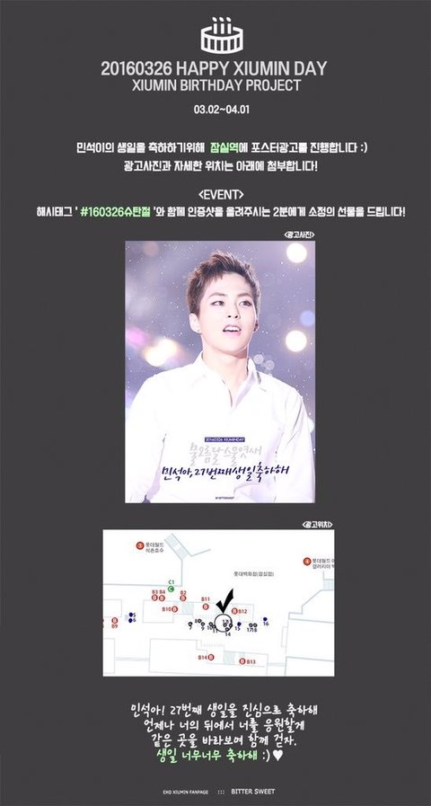 비터스윗님 시우민 지하철생일포스터 하신데>.<
