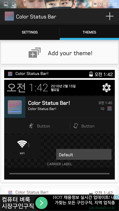 어플에 들어가서 저 위에 테마를 추가하란걸 눌름