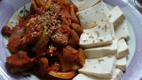 몸살로 누워계신 엄마를대신해서 만든 두부김치.