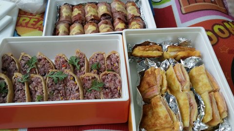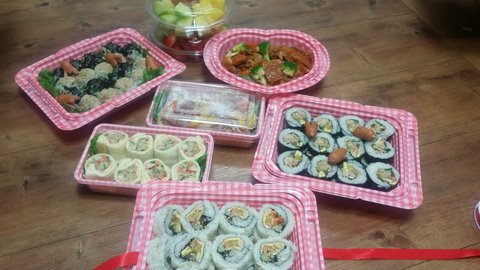 (누드치즈김밥 참치김밥 봄나물주먹밥 베이컨말이 제육볶음 샌드위치)