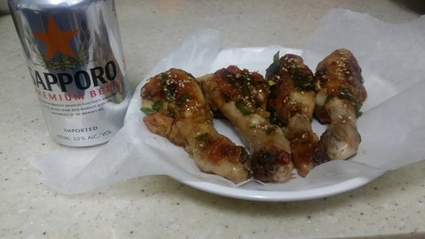 마트에서 파는 닭다리사다가 만든 데리야끼 닭다리구이. 칼집내서 후추와 소금아주약간으로 재운후 시중의 데리야끼소스를 사용. 맥주안주로 엄지 척!