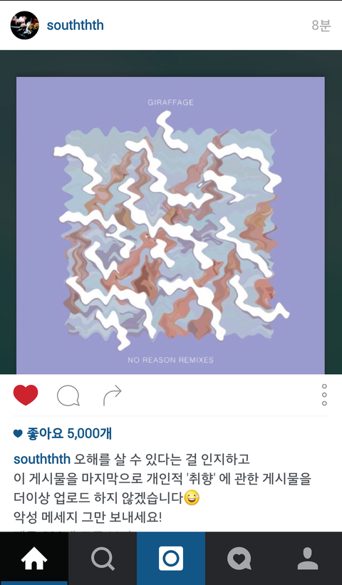 남태현 안티들아 너네 진짜 심하단 생각안드세요? 데뷔때부터 왜 애한테 이렇게 가혹한지 루머생성 못해서 안달..럽스타도 려원전에 맞팔한 다른 여자들이랑 엮을려고 애쓰고 발악했던거 누가 모를줄 암? 깽판도 정도가있지 이제 개인공간 까지. 도대체 남태현이 어떻게 해주길 바람?
