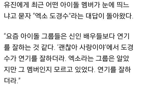 유진 선배님이 인터뷰에서 경수 칭찬하셨다잉