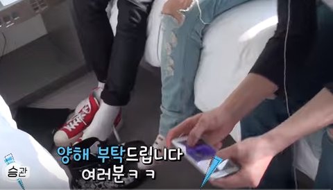 다같이 여객선 안에서 간식을 먹은 후 버논 혼자 가방에서 무언가를 주섬주섬 끄냈는데,