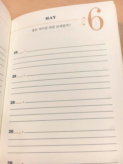그런데 이 작디 작은 비닐팩에 버논이 챙긴 것은 바로 자기계발형 다이어리인 '5년 후 나에게 Q&A a day'