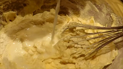 6. 가루가 80%정도 섞이면 우유 50g을 넣고 섞어주세용~!