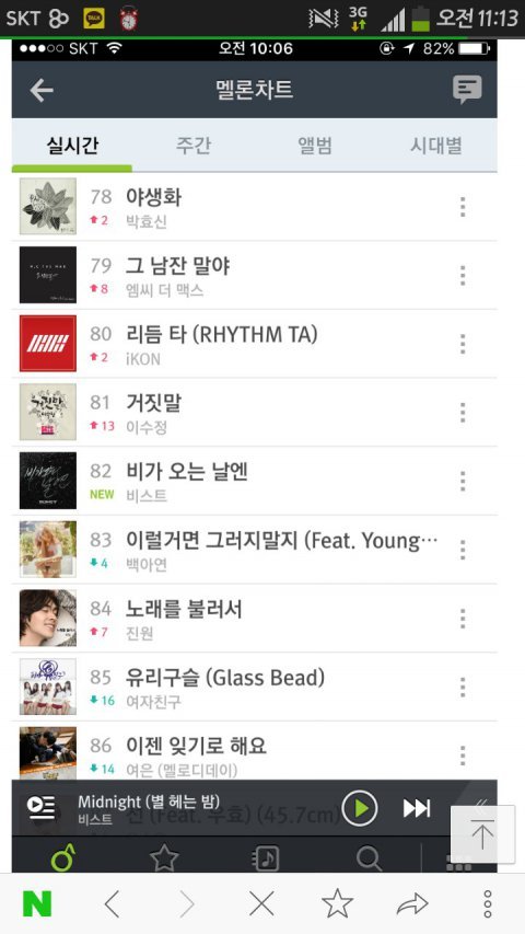비스트 하락세라 말 많은데 비스트 아니면 여기 넣을 그룹이 딱히 없는것도 사실임 얘넨 워낙 노래가 좋아서 비만 오면 차트 등장하는 것처럼