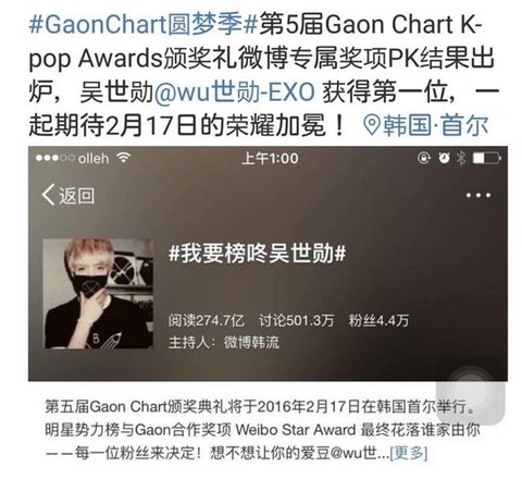 야 가온웨이보상 세훈이가받는다매
