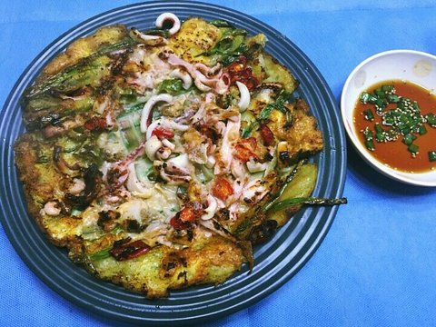 오징어 파전 : 쪽파와 오징어 각종 야채가 필요하며 뒤집는 스킬이 부족해 접시 두개를 활용한다