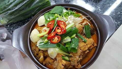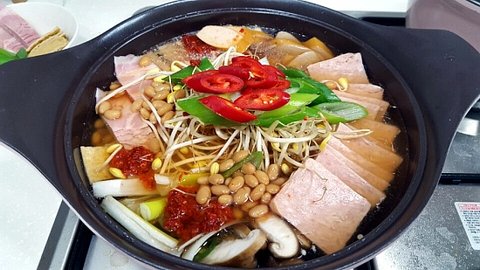 부대찌개: 멸치 다시마 육수를 내어 사골국보다 깔끔하다 .