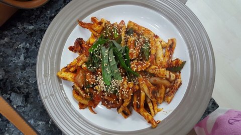 떡볶이 : 요건 간식용으로 김말이가 있길래 함께 만들어 봤음.