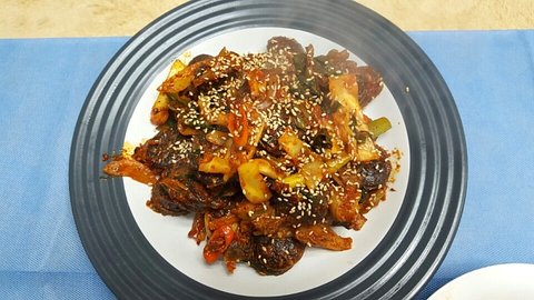 오징어볶음 : 술안주용이라 최대한 물이 안나오게 볶았다. 상추에 싸먹어도 맛있음.