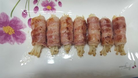 베이컨 팽이버섯 말이 : 부대찌개 해먹고 남은 요리 활용반찬.