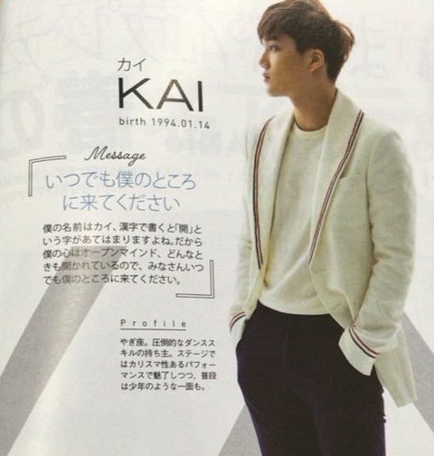 제 이름은 카이. 한자로 쓰면 열 [개]로 써요. 그러니 제 마음은 오픈 마인드. 언제나 열려 있으니 여러분, 언제나 제게로 와주세요.