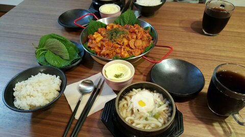 오늘은 닭갈비데이. 고구마, 치즈떡, 새우 가득.
