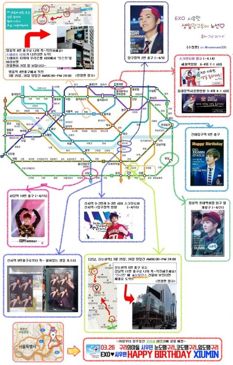 웅녀들, 오늘 가온에서 민석이의 수상소감 진짜 대박이었지? 진짜 슈부심터짐 ㅠㅠㅠㅠ 그리고 이제 팬들에게는 축제나 다름없는 해피시우민데이가 다가온다! 요새 지하철 광고소식이 많이 올라와서 생각난 건데 시우민톡에서 그 유명한 민석이 생일지도가 두 번이나 만들어진 거 다들 알지? 저 생일지도로 기사도 엄청나게 쏟아졌었잖아 세번째 생일광고를 만들어줄 금손 웅녀님이 혹시 계신가요? 금손 타고나지 못한 나 웅녀는 작업이 힘들긴 하겠지만 민석이에 대한 애정으로 생일지도 만들어 주실 웅녀님을 기다려요!!!! 부디 나타나주시길~~~!!!